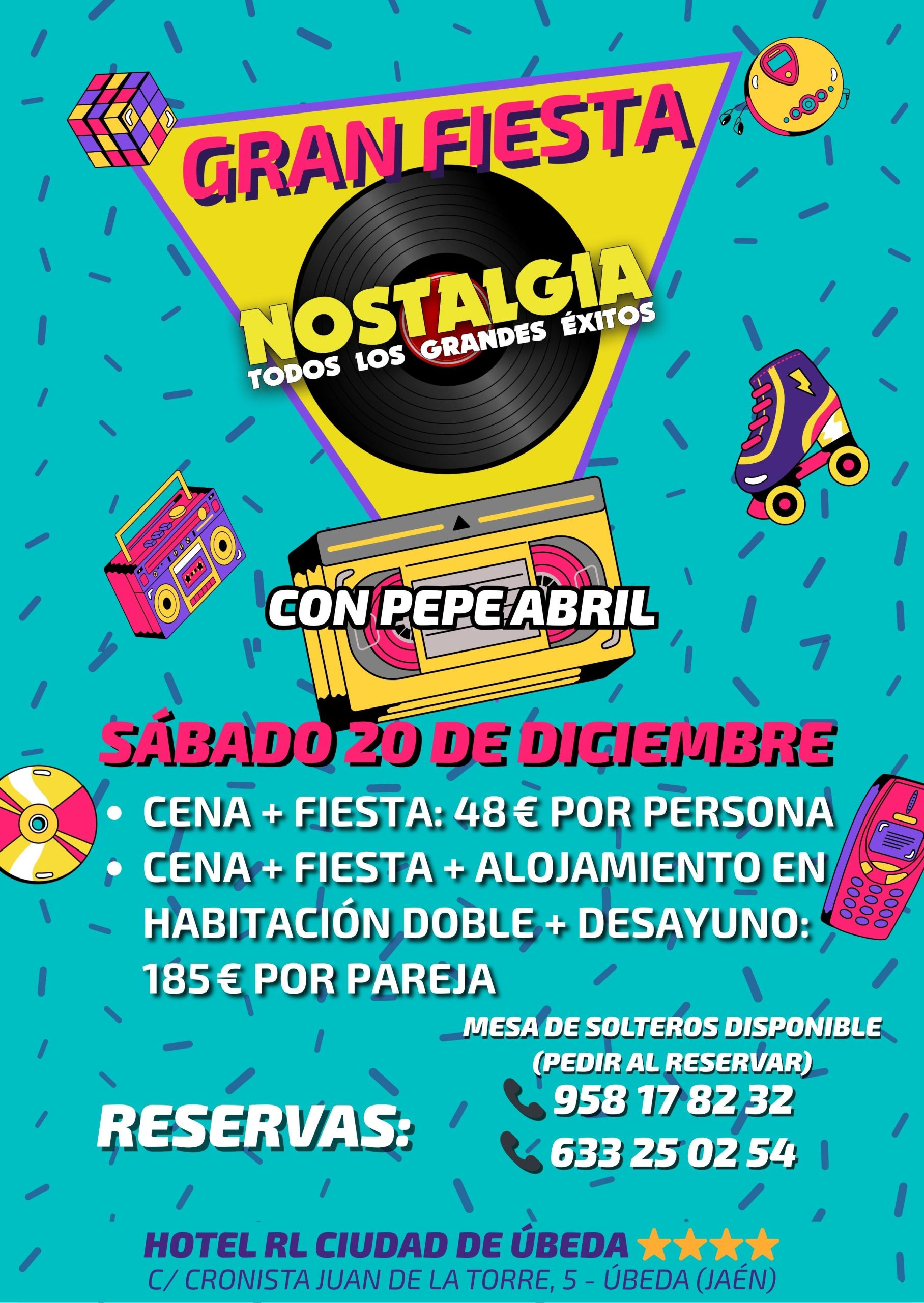 RECUERDA EL SÁBADO 20 DE DICIEMBRE GRAN FIESTA NOSTALGIA EN HOTEL RL CIUDAD DE ÚBEDA, C/ CRONISTA JUAN DE LA TORRE, 5. ÚBEDA – JAÉN